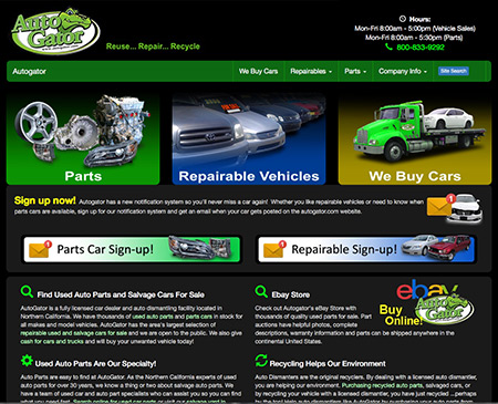 AutoGator is a Roseville California auto dismantler. Our contribution to this project includes website hosting, database management and custom programming.