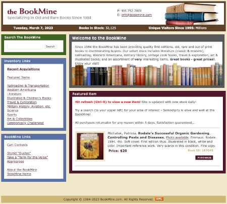 The BookMine is a rare and collectable book dealer. This project consists of an online database and shopping cart for sales.