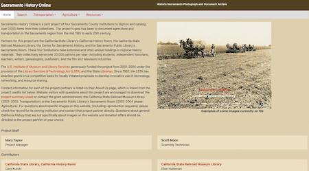 Sacramento History Online is a joint project of four Sacramento County institutions to digitize and catalog over 2,000 items from their collections. The project’s goal has been to document agriculture and transportation in the Sacramento region from the mid 19th to early 20th century.